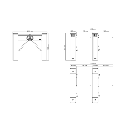 Plus de 35 fréquences de passage, 550 mm de largeur de couloir, acier inoxydable SUS304, épaisseur : 1,5 mm, meilleure performance anti-tailgating grâce à la conception du trépied, barrière tombant automatiquement pour l'évacuation d'urgence, conception des indicateurs LED en particulier au milieu du tourniquet, utilisation à l'intérieur et à l'extérieur ;